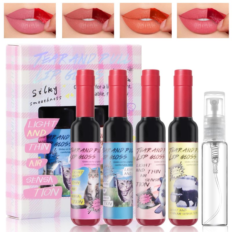 HOSAILY 4Pcs Wine Bottle Lip Stain Peel Off, Tattoo Color Lip Liner Stain peel, High Pigment Transfer Proof Magic Lip Tint, Matte Natural Dewy Finish Waterproof Long Lasting Lipstick Makeup Gift Set
