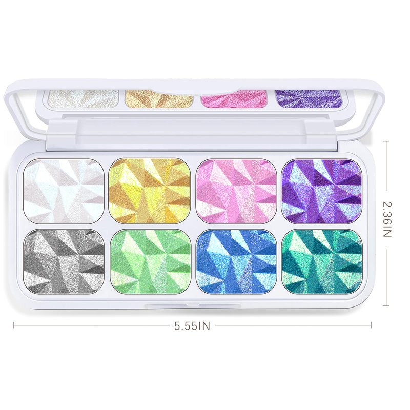 HOSAILY 8 Colors Face Highlighter Makeup Palette Diamond Glitter iluminadores de maquillaje, Intense-Color Chameleon Eyeshadow Rainbow Shimmer Highlighter Metallic Contour Bronzer Palette