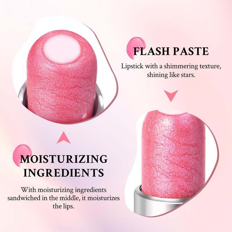 - 【How to Use】This lipstick can be applied directly from the lipstick bullet without a lip brush. It is recommended to apply 2-3 coats of lip balm for a better moisturizing and shimmering effect.