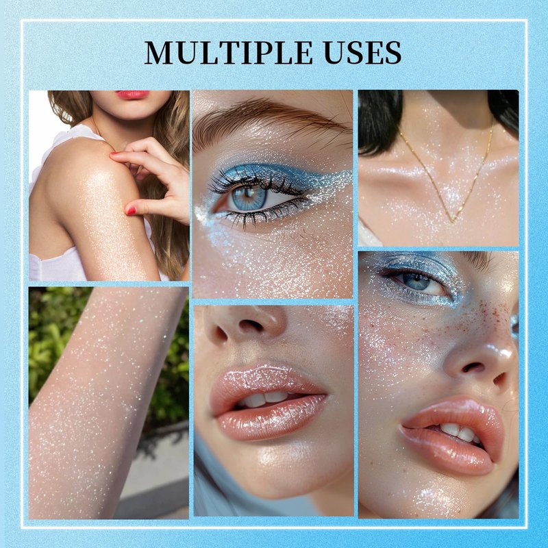 - 【Sparkly Liquid Highlighter】This glitter highlighter makeup features a sparkling, subtle sheen with high refractive index pearlescent properties that increase facial luminosity and give your skin a radiant, sun-kissed glow.