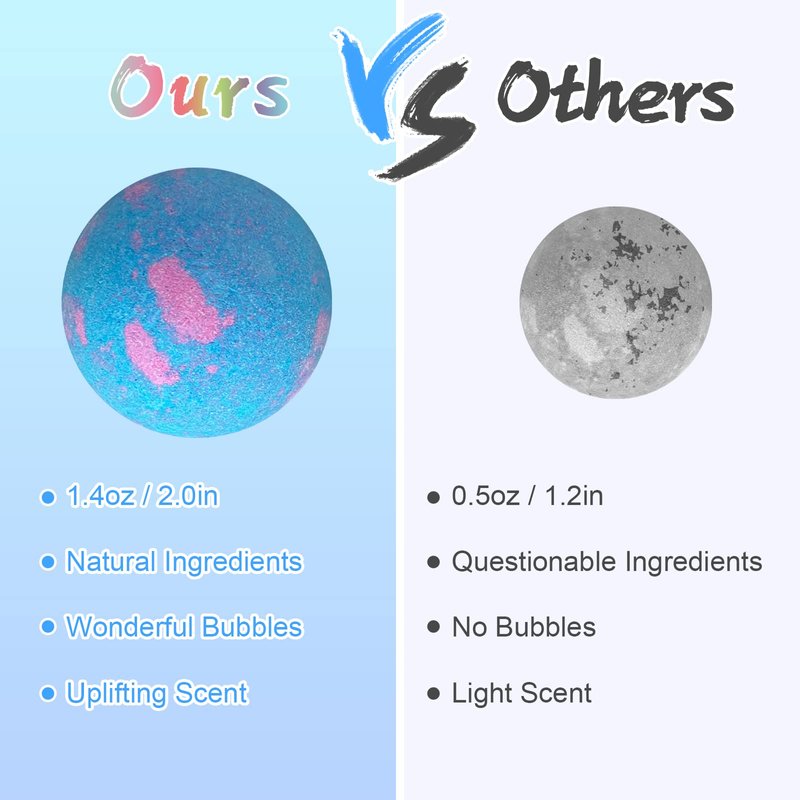 - Larger Size Design: Compared with other foot spa bombs on the market, our bombs are 3 times larger in design, more delicate surface and have stronger fragrance, allowing you to enjoy a SPA-level foot care experience and smooth your feet. Each bomb weigh is 1.4 ounces and 2 inches in diameter