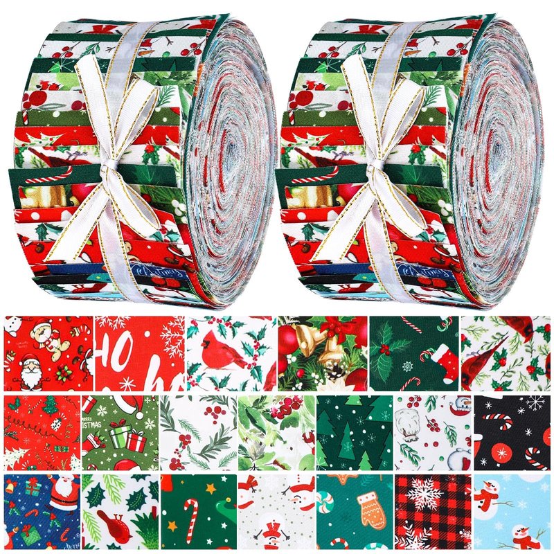 Hosuly 40 Pcs Christmas Fabric Patchwork Roll Quilting Fabric Roll up Fabric Quilting Strips 2.55 Inch Precut Santa Claus Patchwork Roll for Craft Sewing DIY Crafts