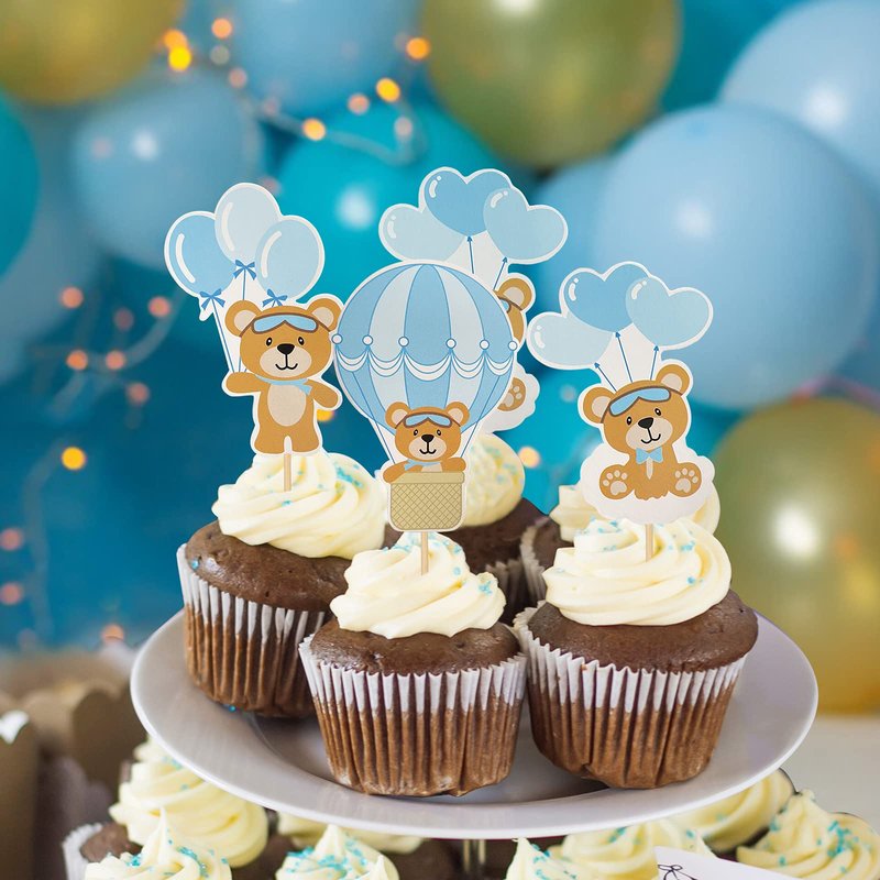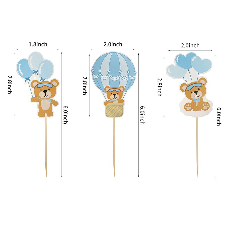 - MATERIAL – Hot air balloon pilot bear cupcake toppers are made with high-quality printed materials and toothpick.