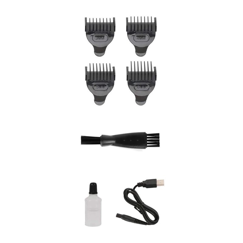 - Comes with clipper guides (3mm, 4mm, 5mm and 6mm), cleaning brush, clipper and blade oil and micro usb cable
