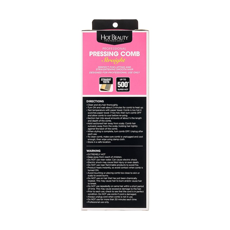 Hot Beauty Professional Electric Pressing Comb, Hot Comb Hair Straightener (Straight Teeth)