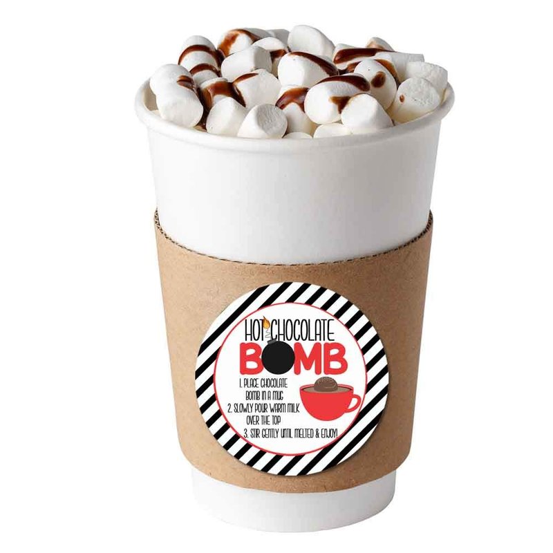 - Awesome Quality: Forget smaller, chintzier labels printed on flimsy paper. At 2 inches your Hot Cocoa Bomb Stickers are bigger & sturdier than most. Plus, they're printed on 60# stock for ultra quality.