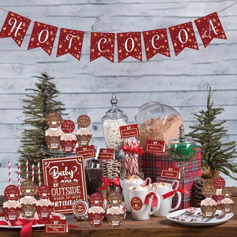 Hot Cocoa Bar Party Supplies Toppers and Wrappers for Wintertime Holiday Christmas Party Happy New Year Party Baby It's Cold Outside Party Supplies Decorations