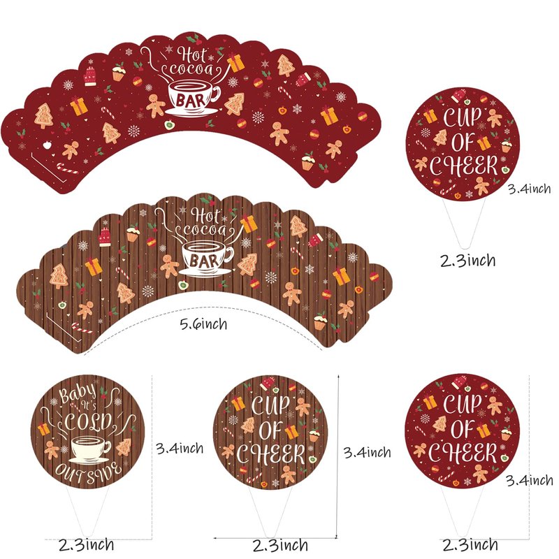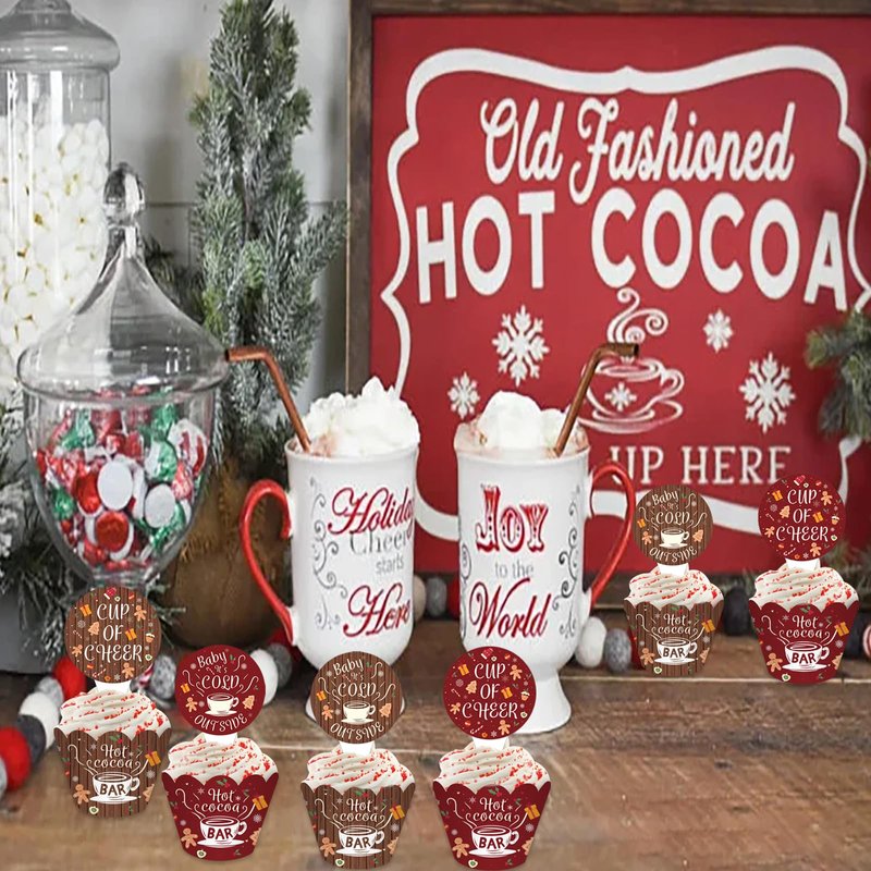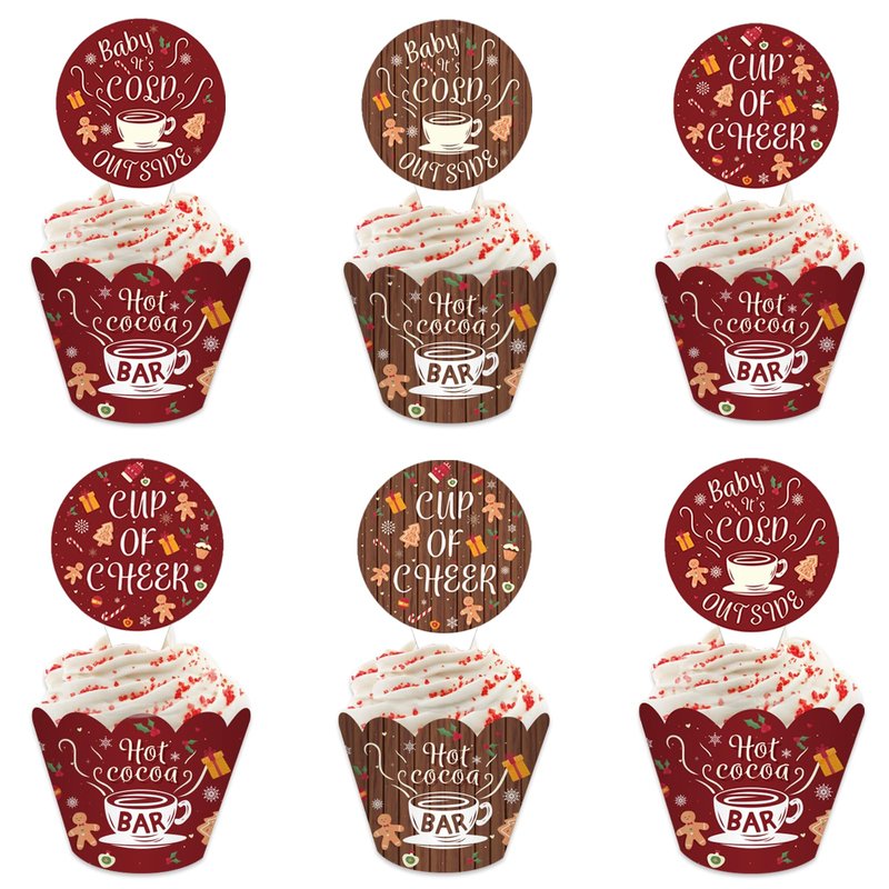 - What you will receive: one package includes 24 pieces of hot cocoa cupcake toppers and 24 pieces of hot cocoa wrappers, 48 pieces in total, sufficient quantity for meeting your wintertime holiday christmas party decoration supplies.