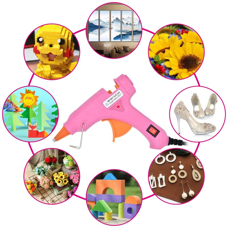 The hot melt glue gun can be used to bond various materials: wood, plastic, glass, stone, ceramics, bricks, paper, wicker, lace, cotton, cloth, etc. Secondary use of garbage: like mineral water bottle, express carton ect, also for daily quick repairs at home school or office.