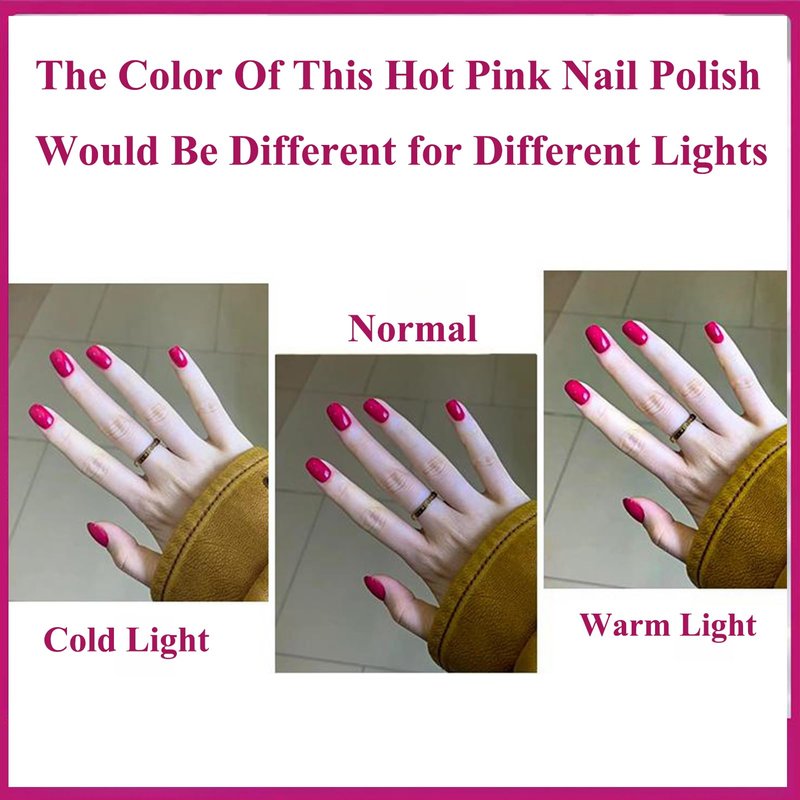 - 💕【Long Wearing Polish】 Proper use with base coat and top coat would make the bright pink polish for nails last for 7-14days.