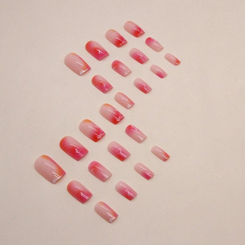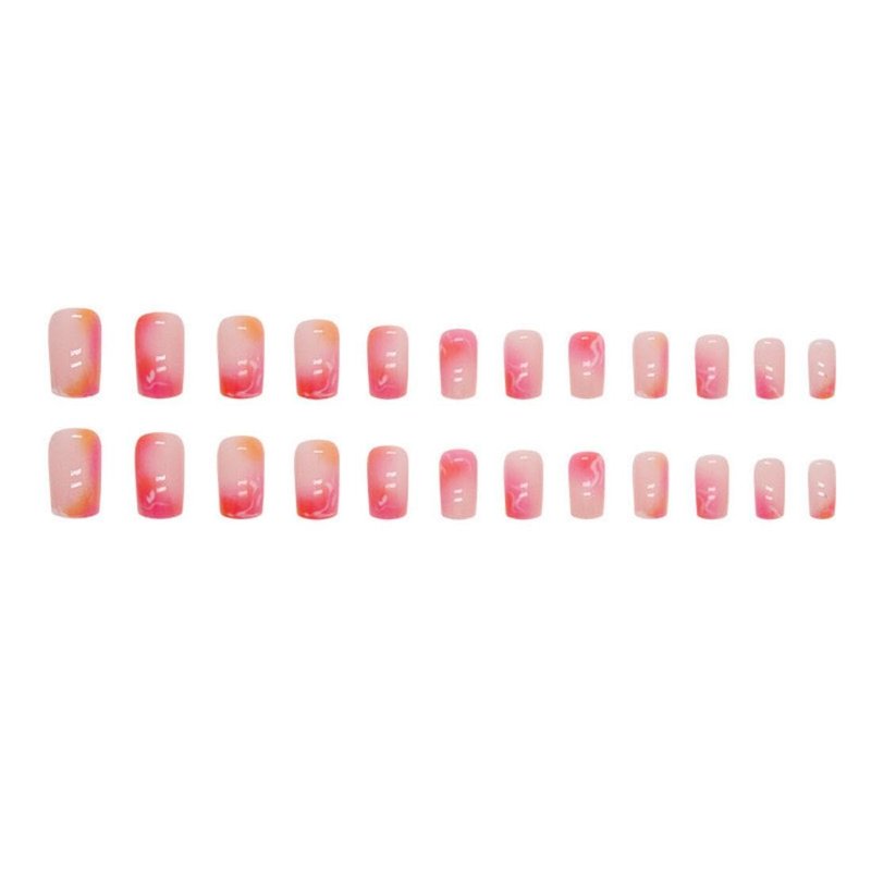 Hot Pink Press on Nails Medium Square Fake Nails Marble False Nails with Design Orange Gradient Stick on Nails Ombre Glue on Nails Reusable Acrylic Nails for Women Girls Manicure 24pcs