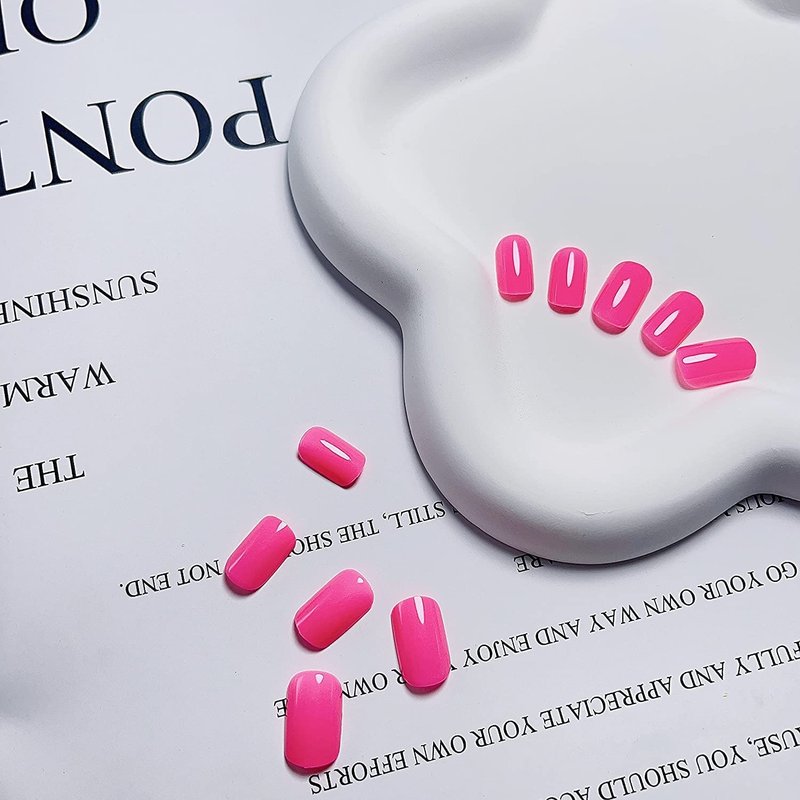 - 【A Game Changer】These short false nails hot pink come ready to wear,with no glue or nail polish required and no drying time,super easy to apply.We also give u everything you need just in case.TIP:NO GLUE.