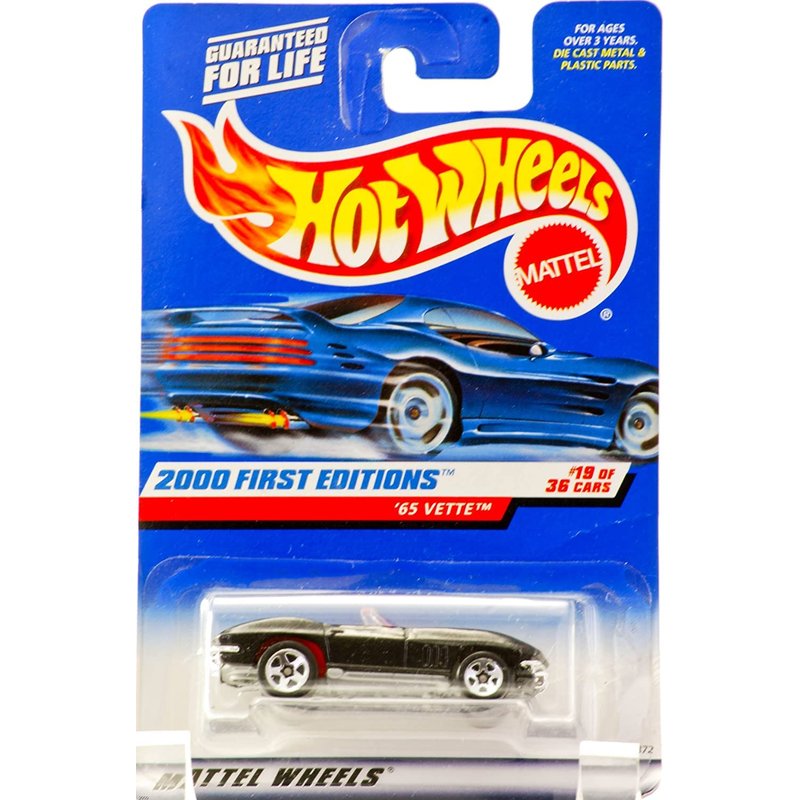 Hot Wheels 2000 - Mattel 65 Vette Convertible - Metallic Black - Red Interior - 5 Spoke Wheels - #19 of 36 - New - Out of Production - Limited Edition - Collectible