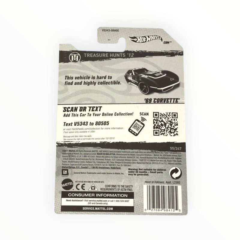 - Hot Wheels 2012 69 Corvette Sports Car Metalflake Blue Treasure Hunts 55