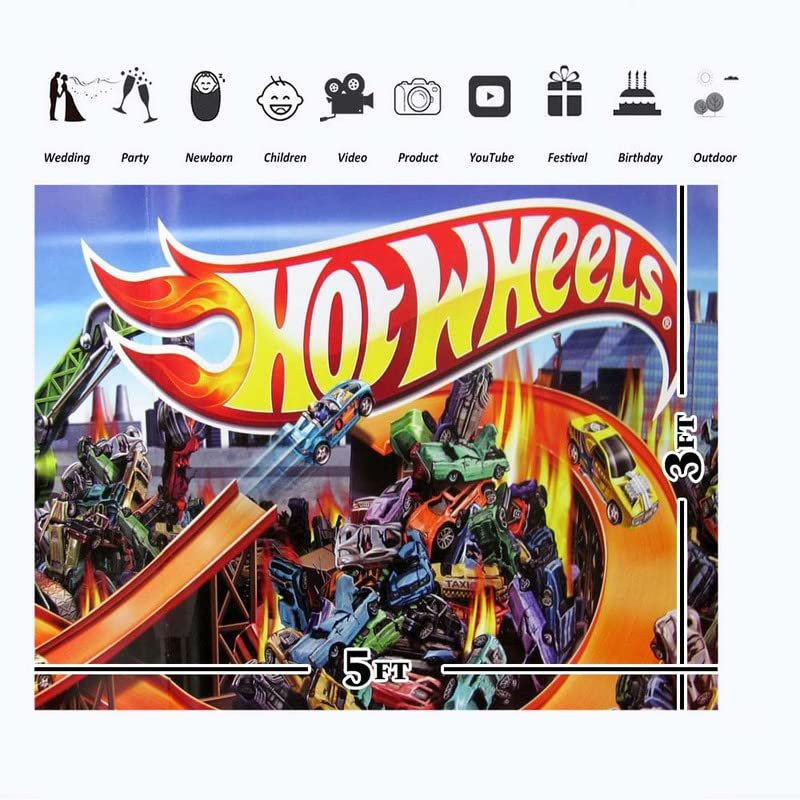 Hot Wheels Backdrop for Birthday Party 5x3ft Happy Birthday Hot Wheels Cars Background for Kids First Birthday Vinyl Monster Truck Backgrounds Backdrops for Party Supplies