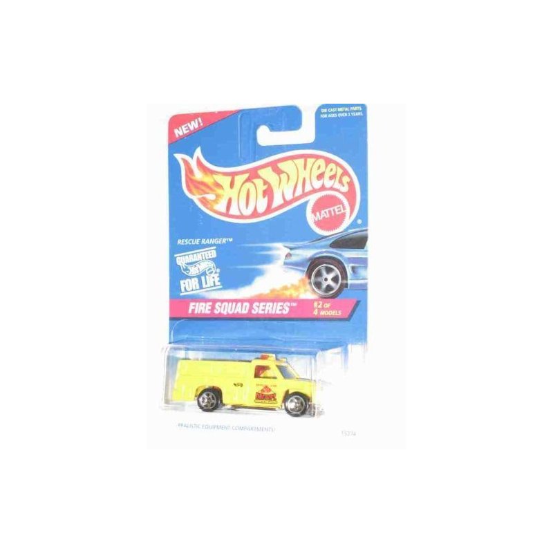 Hot Wheels - Fire Squad Series - Rescue Ranger (Yellow) Collector Car Replica - #2 of 4 Models in Series - Collector #425 - 5 Spoke Wheel Hubs