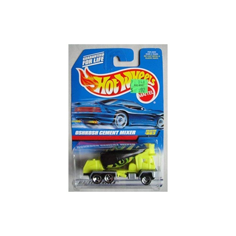 HOT WHEELS YELLOW/BLACK OSHKOSH CEMENT MIXER #863 3 SPOKE