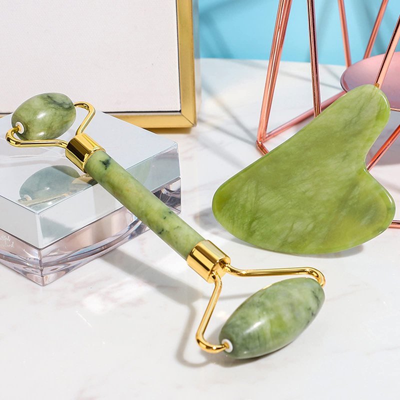 HOTACE Natural Jade Roller Gua Sha Kit Face Massager Portable Facial Skin Care Tools-XIUYU Green