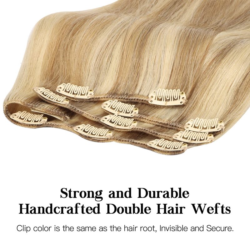 - Premium Real Human Hair Extensions -- Our clip in hair extensions are made from Remy Human Hair. Either the gloss or softness, it's no different from your natural hair. They blend perfectly with your hair color giving you the volume or length you're looking for. At the same time, it's very supple, as it combs and styles easily without tangling or melting. 100% restore the material and touch of real hair.