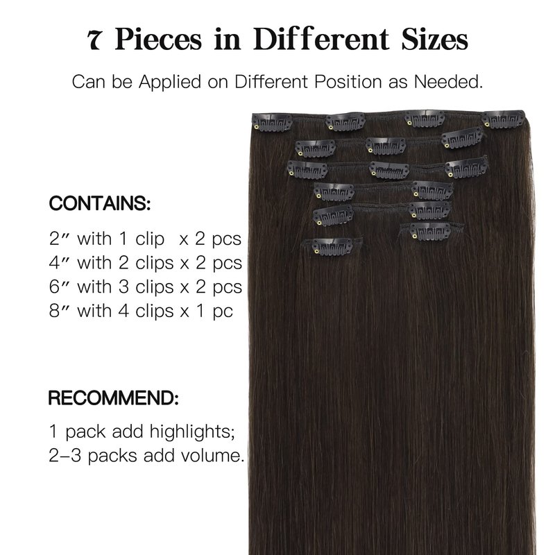 - Available in Various of Colors & Sizes. -- Our Clip In Human Hair Extensions are available in a set of 7 pcs 120g. Available in 6 lengths from 14 inches to 24 inches. Blonde Hair Extensions, Balayage Hair Extensions, a variety of colors to satisfy your color cravings and to match your hair perfectly . You can wear 1 piece to add a ray of radiance to your hair, or you can wear all clip ins to make your hair look fuller, and more charming.
