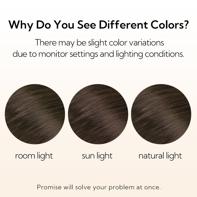 - 【Attention for Choosing Color】 Due to light monitor etc. the color of the hair extensions may be slightly different from the color shown in the pictures. You can consider your own natural hair color and choose the color according to the picture shown. It's a sheer pleasure for assisting you if you have any questions about our products orders and other problems