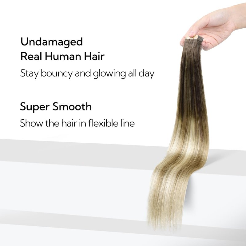 - 【Firm & Invisible Tape】Every strand of remy human hair extensions is firmly fixed with transparent tape. There is no worry that tape irritates your skin for the material is hypoallergenic so it won't damage your scalp and hair. Also the tape can be easily removed with remove oil without residue