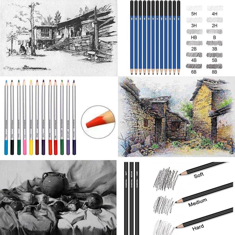 - 【A Wide Variety of Sketching Pencils and Watercolor Pencils】 The drawing pencils cover a wide range of lead hardness sketch pencils include 5H,4H,3H, 2H, HB, B, 2B, 3B, 4B, 5B, 6B, 8B.Our art supplies add 12 watercolor pencils,which can meet your basic coloring need. The sketching pencils set also include 3 blending stumps, 3 charcoal pencils, 2 kneaded erasers, 1 pencil extender, 1 pencil sharpener ,1 art knife,2 brush and 1 canvas pencil case. This drawing pencils set can totally meet your artwork needs.