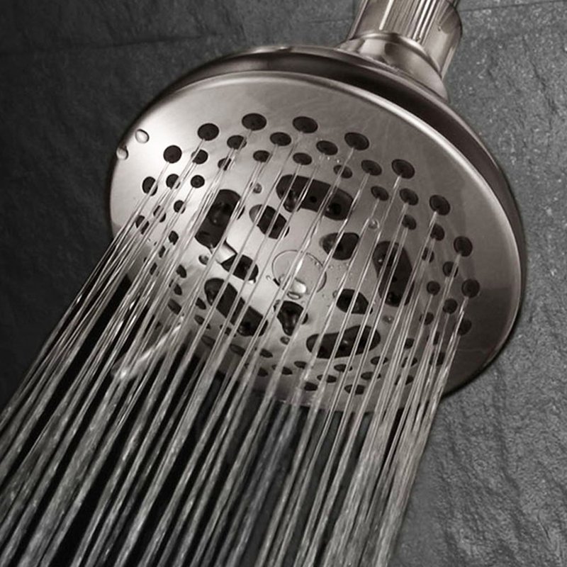 - DELUXE SHOWERHEAD FEATURES: Hotel Spa rainfall showerhead features high-power 4.25-inch click lever dial, rub-clean jets which is helpful for easy cleaning and avoiding lime build-up. It also has an angle-adjustable for easily enjoying a multi-angle wash