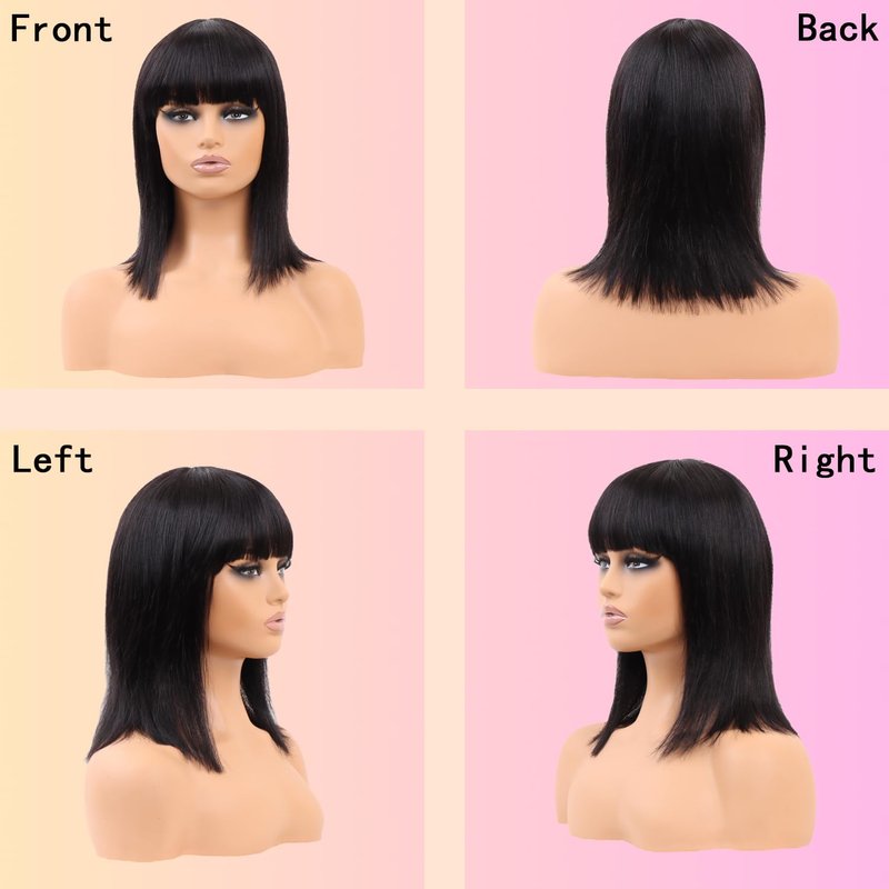 - 【Wig Material】: Selected Human Hair, Glueless Short Bob Wig with Bangs, Machine Made None Lace Front Human Hair Wig, More Convenient, You Can do Sports Crazily without Worries. Let You Always Keep Perfect In Anytime and Anywhere.