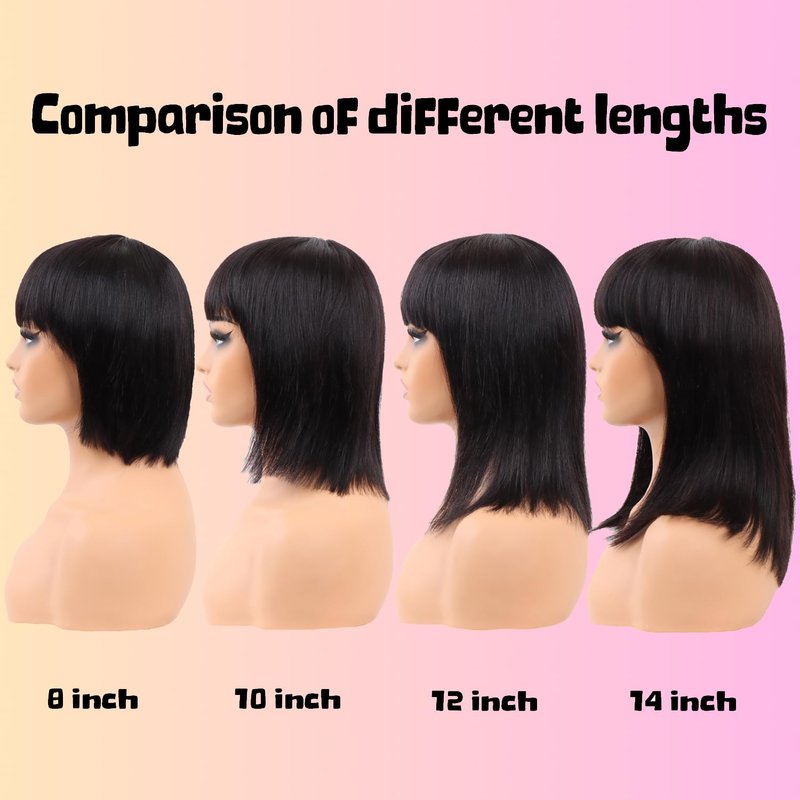 Hair Type: Glueless Bob Wig with Bangs Human Hair