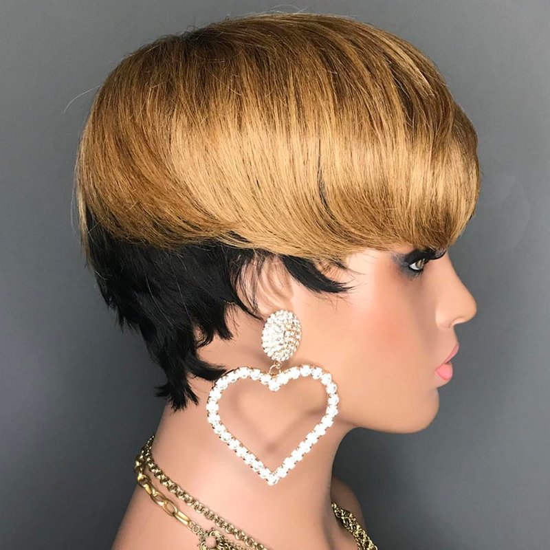 Short pixie cut wig is often available in natural hair colors like black, brown, and blonde.