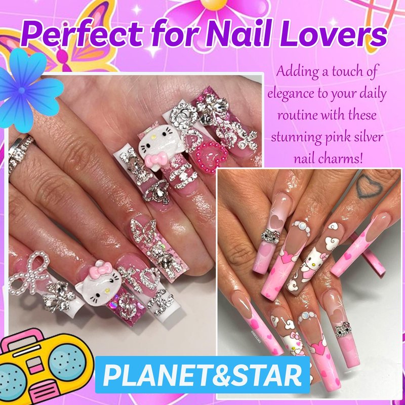 Meet your new favorite nail accessory: the Pink & Silver Nail Charms Set! This dazzling collection includes: