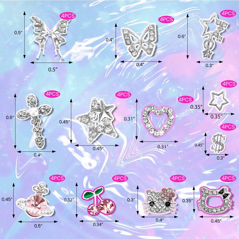 - Versatile and Chic: Whether you're heading to a formal event or just hanging out with friends, these silver charms for nails and kawaii nail charms have got you covered. The stars and crosses with pearls offer a sophisticated look, while the butterflies and hearts with rhinestones bring a cute and playful vibe. Mix and match to create the perfect style for any occasion.