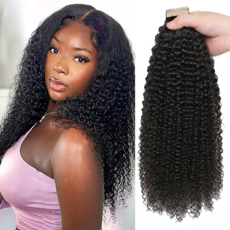 - 【Tape in Hair Extension Human Hair Fetures】Kinky curly tape in hair extension are especially friendly for black women and girls! It can not only increase your hair length, but also increase your hair volume.Tape in hair extensions are the best choice if you want to change your hairstyle easily