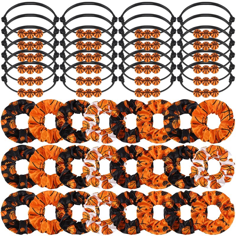Hotop 48 Pcs Basketball Gifts Basketball Team Gifts Set Included 24 Pcs Hair Scrunchies Hair Bands Elastic Hair Ties 24 Pcs Adjustable Basketball Bracelets for Players Sport Accessories Party Favors