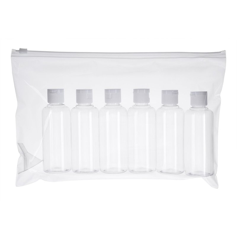 6 Pack transparent plastic flight travel bottle set with small funnel for flight, airport, holiday