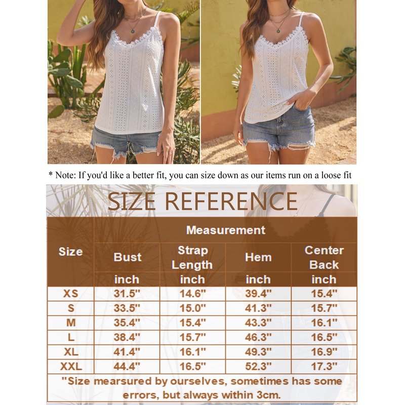 - 🌞【Package Content】1 x Lace camisole for women. Available in XS-2XL, solid and floral top. Please refer to the size chart before purchase order and choose the size you want