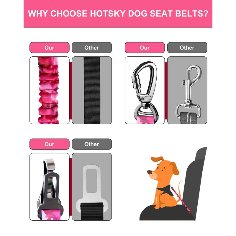 - UNIVERSAL COMPATIBILITY - Hotsky dog car harness seat belt is designed to be compatible with most vehicles. For your pet's safety, please do not attach the seat belt to your pet's collar directly. It is recommended that the seat belt leash be used with a dog vest harness instead of collars