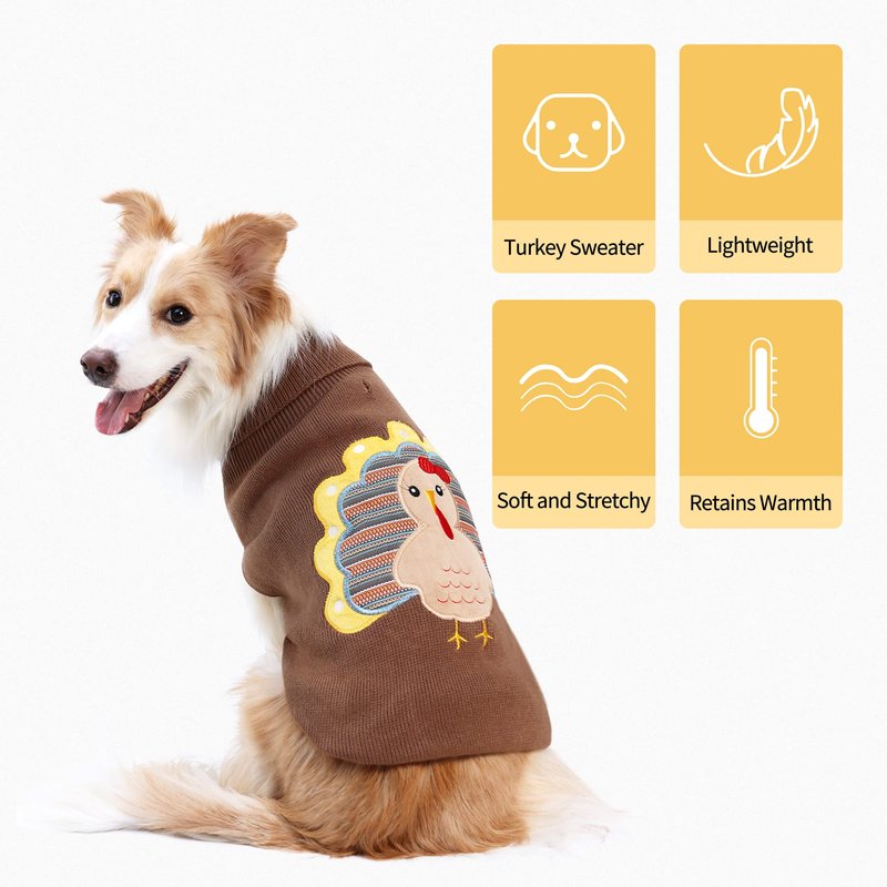 Hotumn Dog Sweater Thanksgiving Classic Knitwear Pup Dog Shirts with Turkey Pattern Warm Winter Pet Clothes for Small Dogs