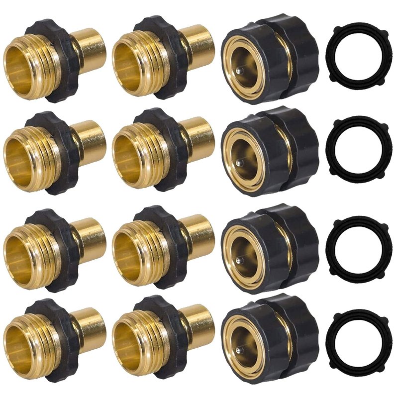 Hourleey 3/4 Inch Garden Hose Quick Connector, 4 Pcs Female & 8 Pcs Male of No Leak Quick Connect Hose Fittings