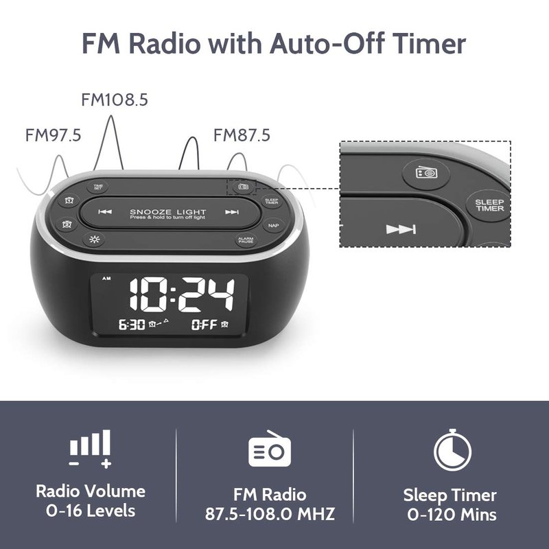 HOUSBAY Glow Small Alarm Clock Radio for Bedrooms with 7 Color Night Light, Dual Alarm, Dimmer, USB Charger, Battery Backup, Nap Timer, FM Radio with Auto-Off Timer for Bedside