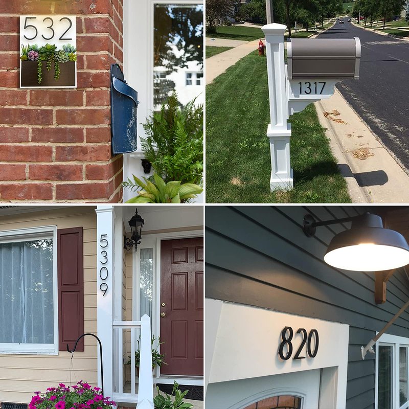 - 【Adaptable】These house numbers for outside can be installed as Floating numbers (using included spacers) or Flush Mounted, mount vertically, horizontally, or at an angle to any surface including vinyl, brick, stucco, rock, wood, stone, metal, or concrete, you can even use them as mailbox numbers. It will create a unique and more beautiful look for your home.
