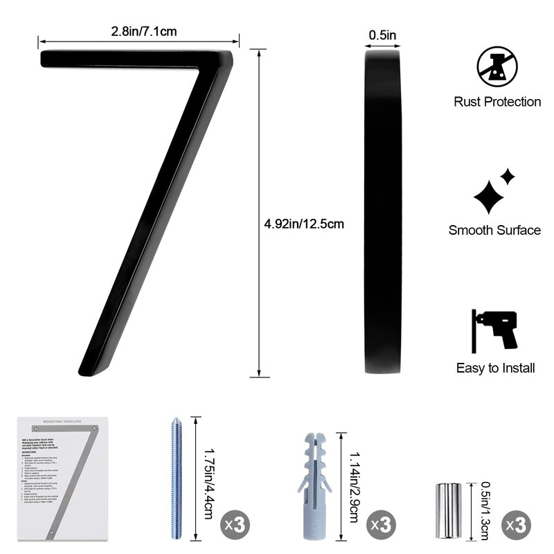 House Address Numbers, 5 Inch Metal Modern House Numbers,Floating Numbers for Garden Door Mailbox Decor with Nail Kit and Instructions, Black (Number 7)