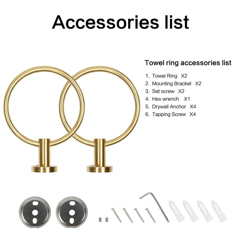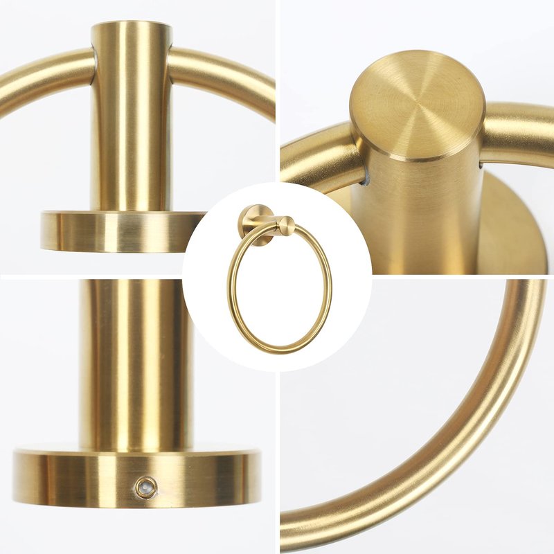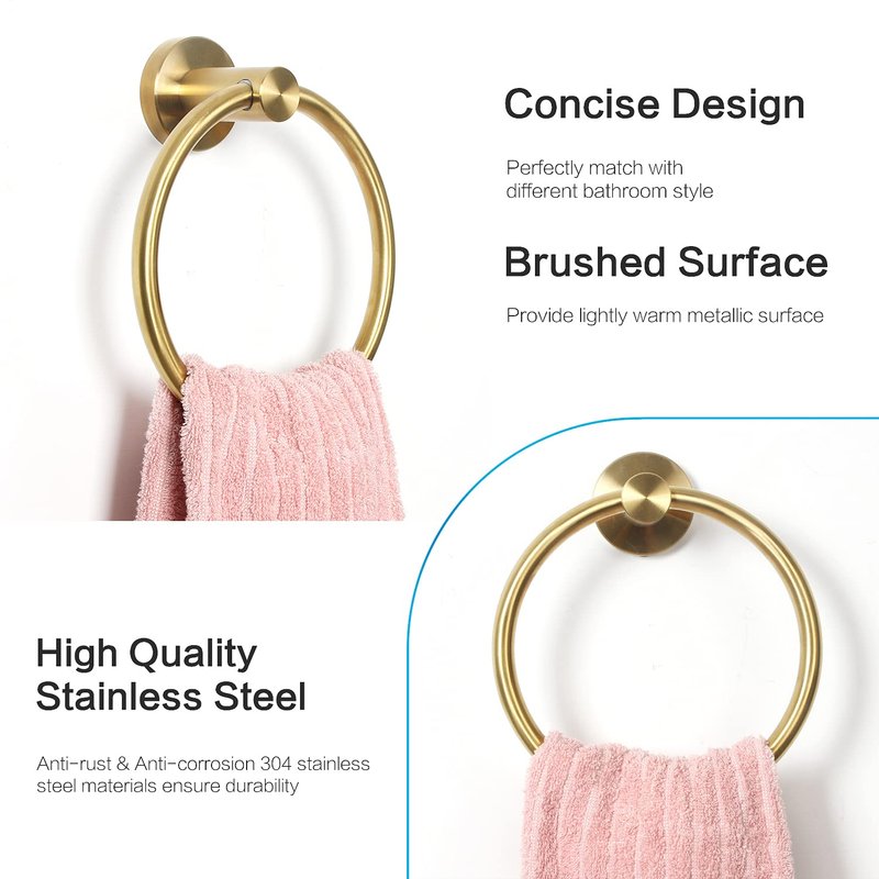 - 【CONCISE DESIGN】With modern concise design, the brushed gold hand towel ring looks awesome and can be used for different bathroom decor. The concise design makes the hand towel holder much more beautiful and elegant.