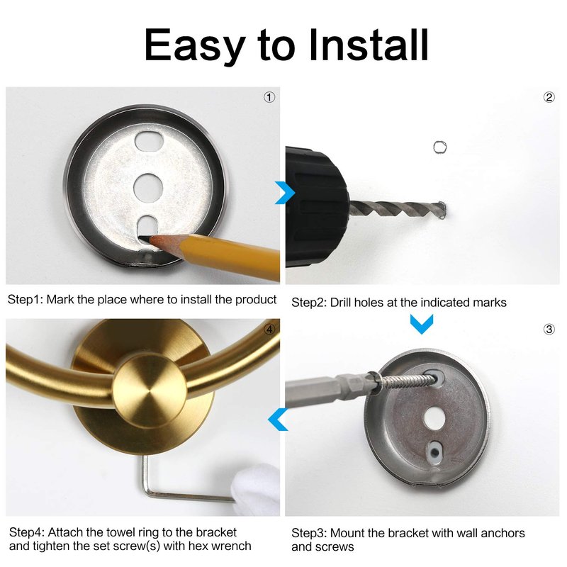 - 【EASY INSTALLATION】DO NOT need professional installer. With step by step installation guide, the round towel rack is easy enough to be installed by yourself.