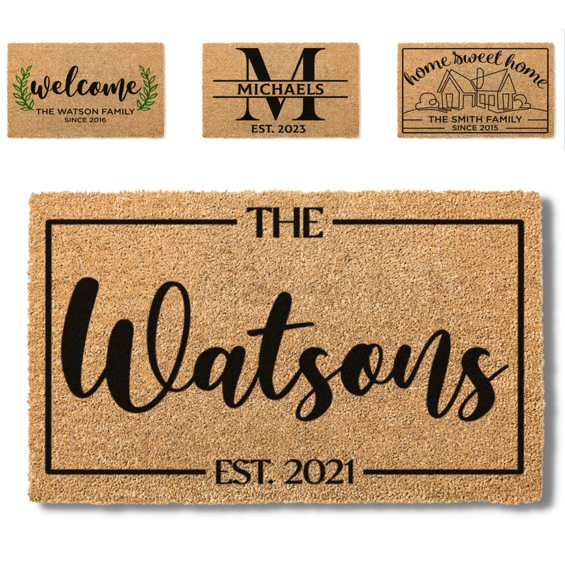 Housewarming Gifts for New Home, Personalized Door Mat, 3 Sizes - 6 Designs, Custom Doormat with Family Name, Customized Welcome Mat Outside for Front Door