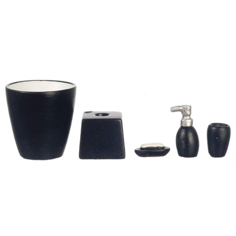 Houseworks, Ltd. Dolls House Miniature Modern Black Bathroom Accessory Set Bin Soap Tumbler 5 Pc
