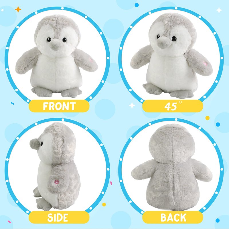 - GREAT QUALITY MATERIALS AND FINE WORKMANSHIP: The 12” plush penguin is made of super soft fabric which is very comfortable and smooth to touch. Safe and soft for children to hug. The penguin’s eyes on the stuffed animal penguin is tightly stitched, and we used the velcro tape on the back of the penguin, in case the traditional zipper may hurt kids. This stuffed animal is made from soft and durable materials, ensuring it will last through years of playtime.
