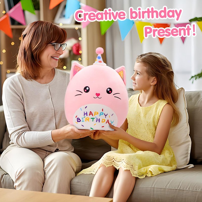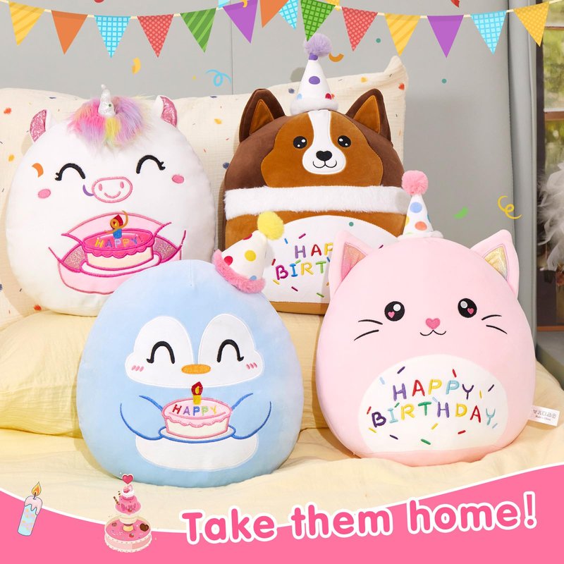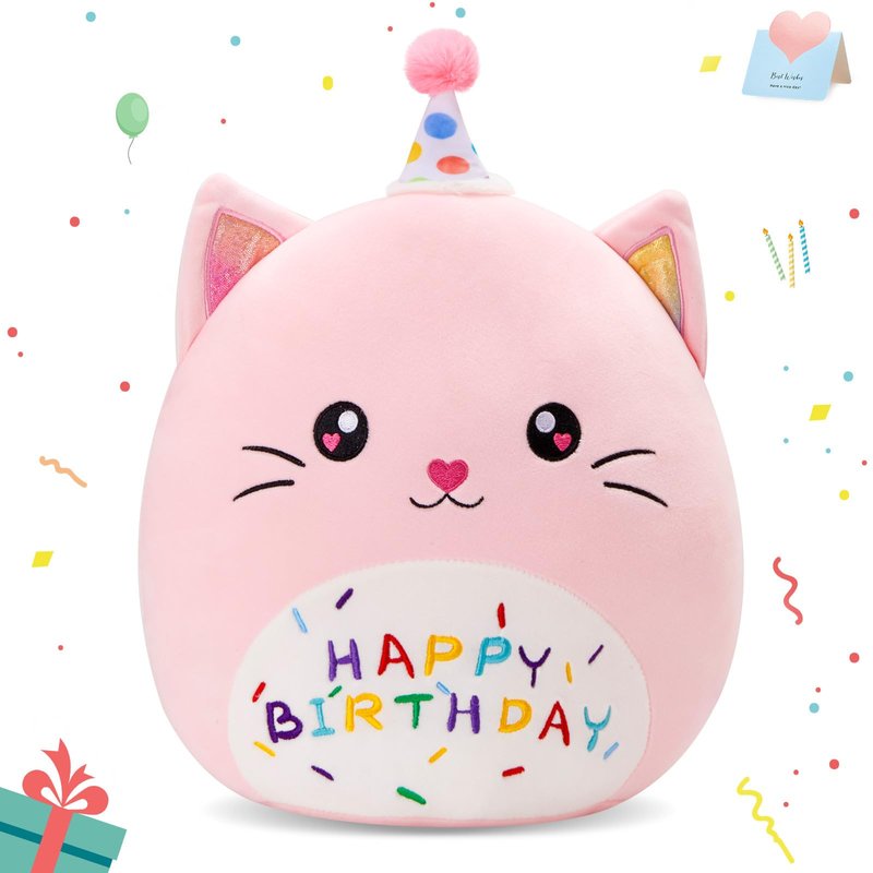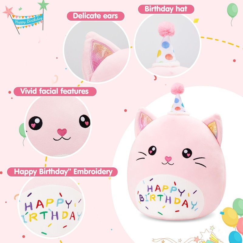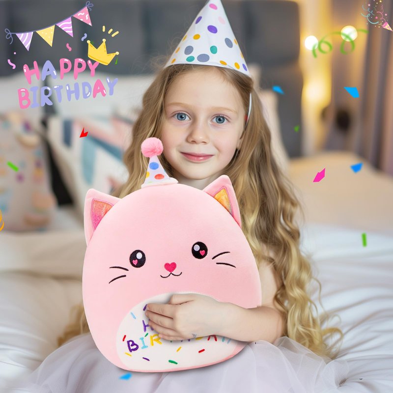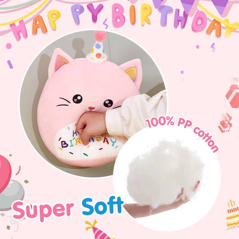- Unique Birthday Theme Design: This adorable cat plush pillow features a cute birthday hat and "Happy Birthday" embroidery, making it the perfect birthday gift or party decoration.