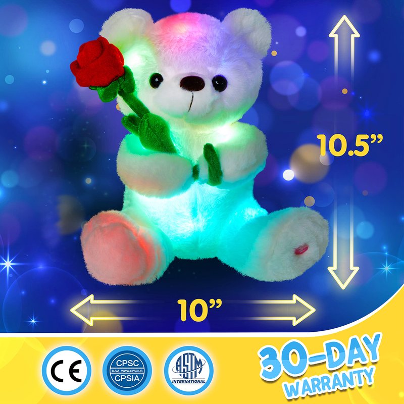 Functions: led stuffed animal, light up plush toy, party decoration, home ornaments, night light toy, kids gift, funny present, token of love, companion, release stress.